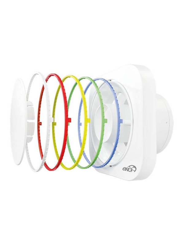 Уникальная конструкция лицевой панели с двумя положениями обтекателя для регулировки потока воздуха. Укороченный фланец позволяет монтировать вентилятор, когда есть ограничения по глубине вентиляционной шахты, а также в потолок (c опцией BB). Пять сменных декоративных колец в комплекте. Уровень защиты – IP24.