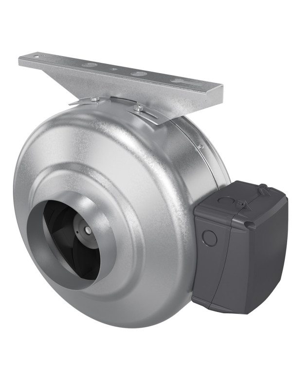 Коммерческий канальный центробежный вентилятор, выполненный в корпусе из оцинкованной стали. Предназначен для установки в любой точке приточно-вытяжной вентиляционной системы и под любым углом. В вентилятор устанавливается однофазный двигатель на шарикоподшипниках с внешним ротором, который оснащен рабочим колесом с загнутыми назад пластиковыми лопатками. Мотор имеет тепловую защиту с автоматическим перезапуском. Подключение осуществляется в герметичной клеммной коробке с откидной крышкой. Степень защиты оболочки электрооборудования от проникновения твердых частиц и воды – IPX4, двигателя – IP44. В коробку с вентилятором вкладывается кронштейн для монтажа к поверхности и два винта для крепления кронштейна к корпусу.