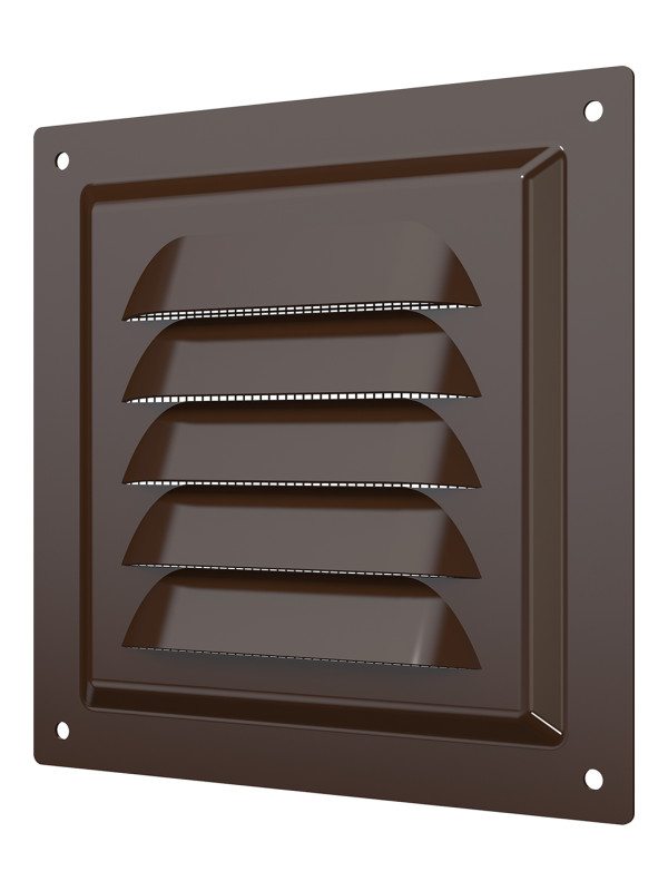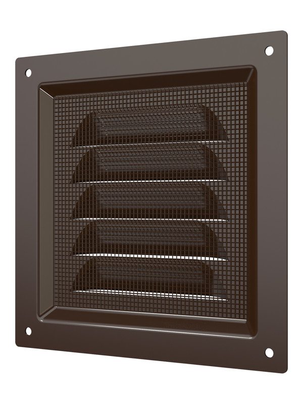 Купить 1212МЭ кор, Решетка вентиляционная с покрытием полимерной эмалью, с сеткой 125х125, Сталь,коричневая вы можете в компании ВенТехника, оформив заказ в интернет магазине, или